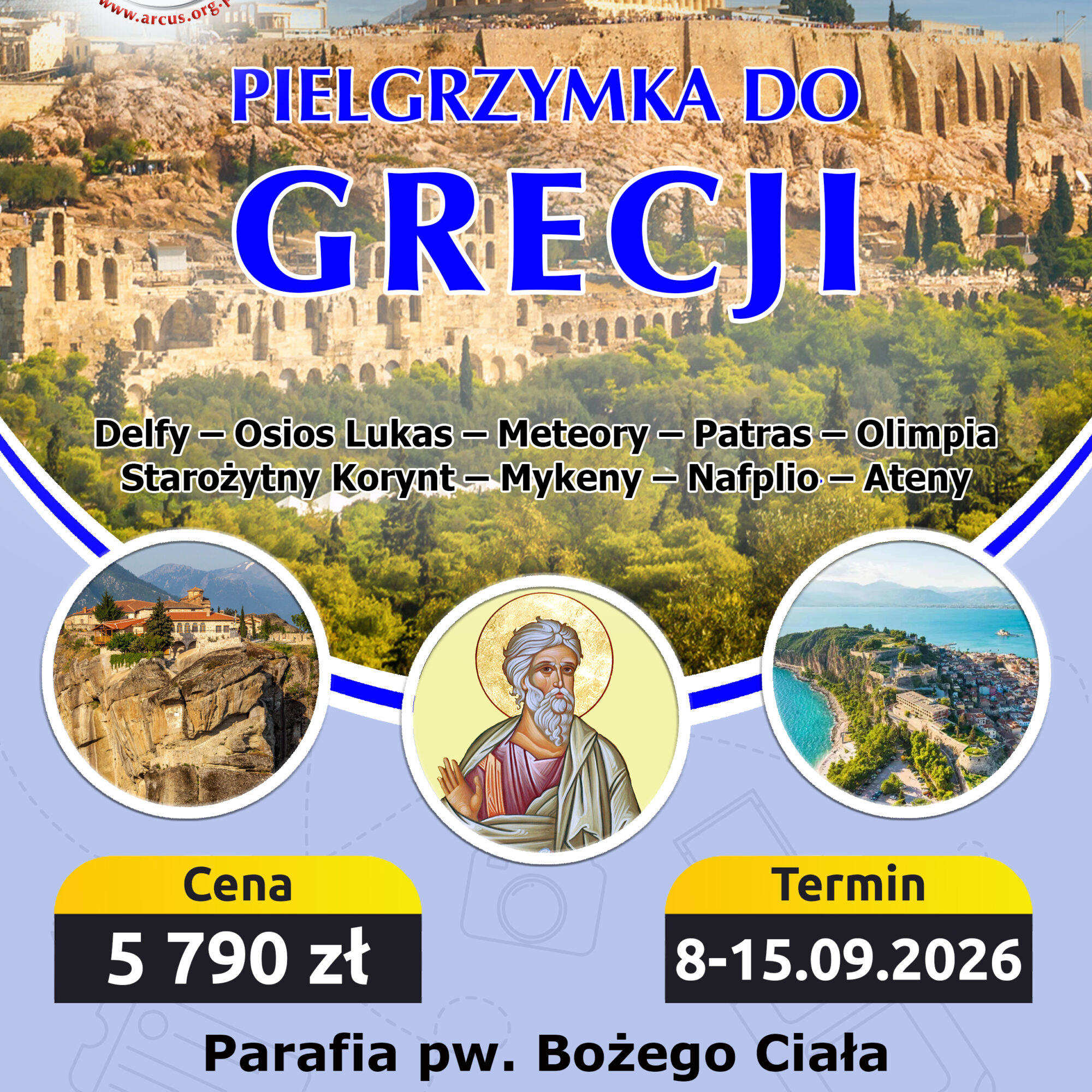 Serdecznie zapraszamy na pielgrzymkę do Grecji, do grobu św. Andrzeja Apostoła. Szczegóły w zakładce „Wydarzenia”